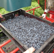 - • Les buissons de grande taille offrent un rendement supérieur, et pour cette raison la récolteuse offre en standard la possibilité de cueillette et transport en deux caisses-palettes de 500 kg (1 150 lb), l'un après l'autre.