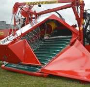 - • Elle est dotée d'un convoyeur transversal élargi (de 50 cm / 1 pi 8 po). Cela signifie un surplus d'espace libre devant la tête vibrante, ce qui minimalise la superficie du sol où les fruits pourraient tomber.