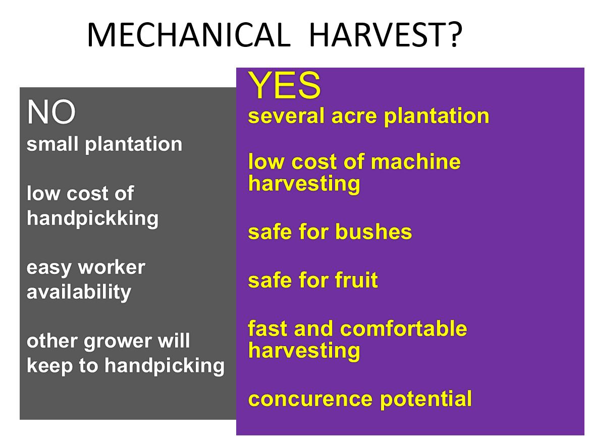 Firstly, try to answer if you really need mechanical harvest?