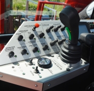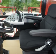 Le modèle PREMIUM comprend en standard une cabine panoramique climatisée à faible bruit. La majorité des commandes se trouve dans l'accoudoir, auprès du siège de l'opérateur, ce qui rend le contrôle plus ergonomique et fonctionnel. Le changement de vitesse ou de direction s'effectue par l'intermédiaire d'un joystick pratique, ce qui rend cette opération intuitive et aisée. La vitesse des convoyeurs et des ventilateurs est réglée à l'aide de potentiomètres.